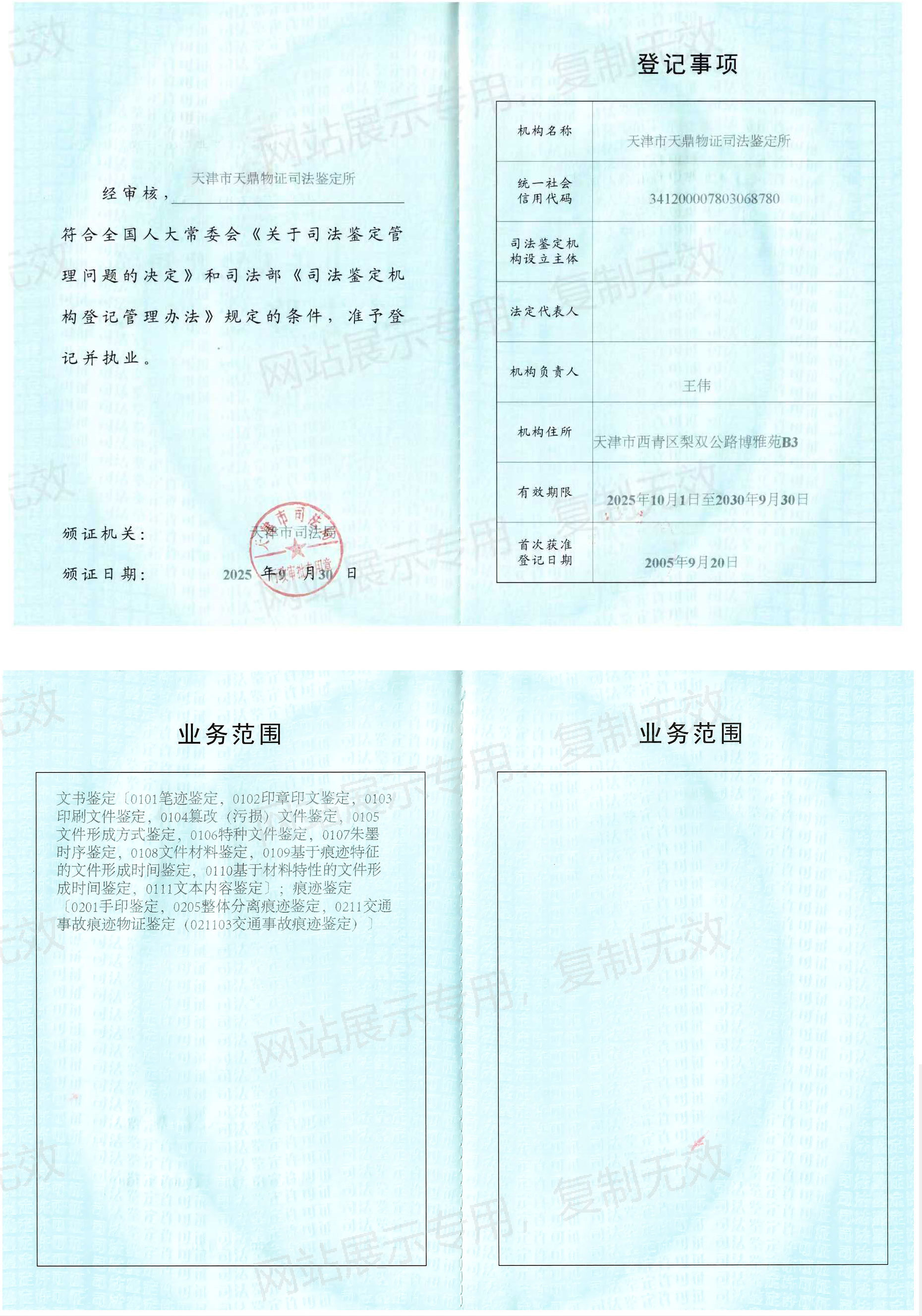 • 机构名称:天津市天鼎物证司法鉴定所